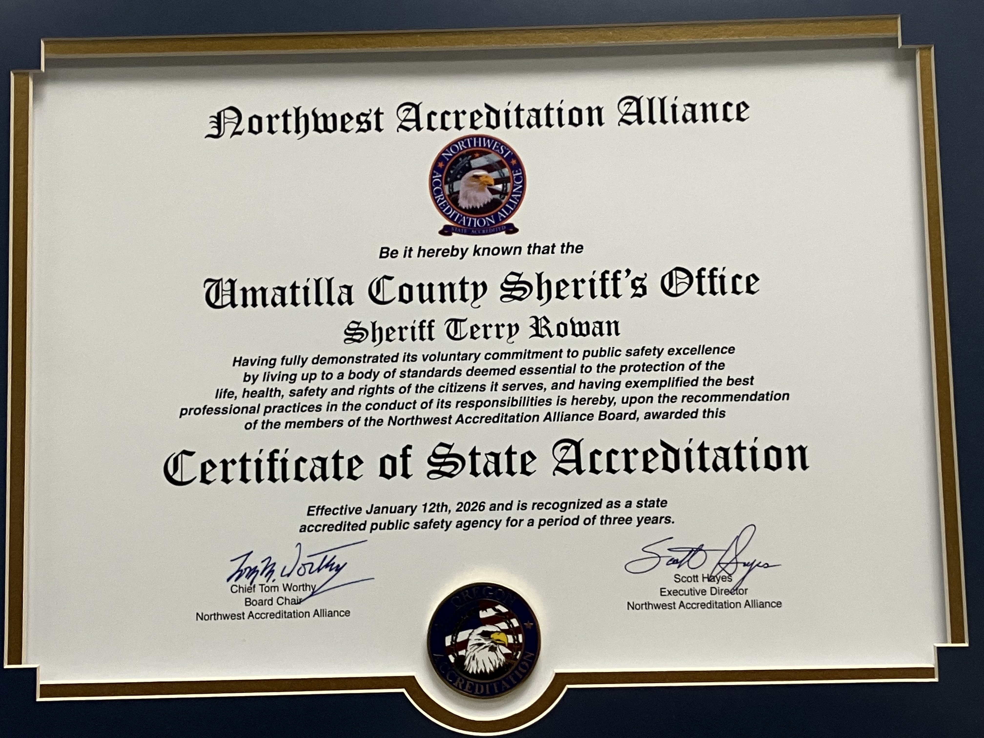 The Umatilla County Sheriff’s Office is accredited by the Northwest Accreditation Alliance