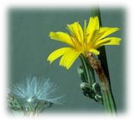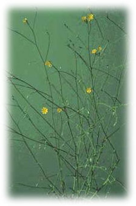 Rush Skeletonweed belongs to the chicory tribe of the sunflower family. This herbaceous perennial ranges from one to four feet tall, with a taproot reaching down seven feet, or more. The seedlings have a long thin taproot. Rush Skeletonweed overwinters as a rosette of hairless, basal leaves that are two to five inches long and ½ to 2 inches wide and broader at the tip. The lateral lobes point back toward the base - very similar to a dandelion. The mature plant consists of a dark green, nearly leafless flowering stem, with many aerial branches. The basal rosette is absent at this stage. The stem and aerial branches support a few leaves, which are narrow and linear, and mostly entire. A distinguishing characteristic of Rush Skeletonweed is the presence of coarse, downward pointing brown hairs near the base of the stem. The stems and roots of Rush Skeletonweed exude a white latex sap when cut. The flower heads, about ½ inch in diameter, grow along the stem in the leaf axil or at the branch tips, and they are found individually or in clusters of two to five. Each flower head has 7-15 (usually 11) ray flowers, with yellow ligules resembling petals. These yellow ligules are strap shaped with small teeth across the blunt end. Mature, vigorous plants can produce 1,500 flower heads, with the capability of producing 20,000 seeds. The immature seeds are greenish-white, and they gradually darken to a yellow-brown or olive-green in the 13-15 days it takes to mature. The seed color can be used as an indication of maturity, with light colored seeds showing low germination rates (Old 1981). Each seed has a pappus, which is capable of carrying seeds along wind currents up to 20 miles (Cuthbertson 1967 and Schirman and Robocker 1967 as cited in McLellan 1991).